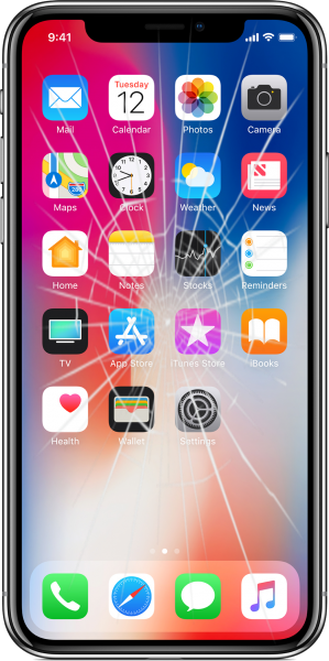 – Cracked screen, shattered screen, chipped screen, damaged LCD or OLED panel, damaged touch panel.